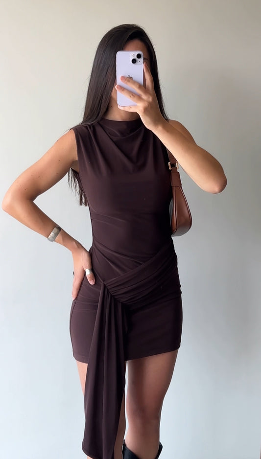 VESTIDO MENORCA LAZOS CAFE