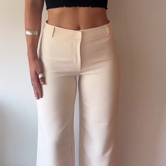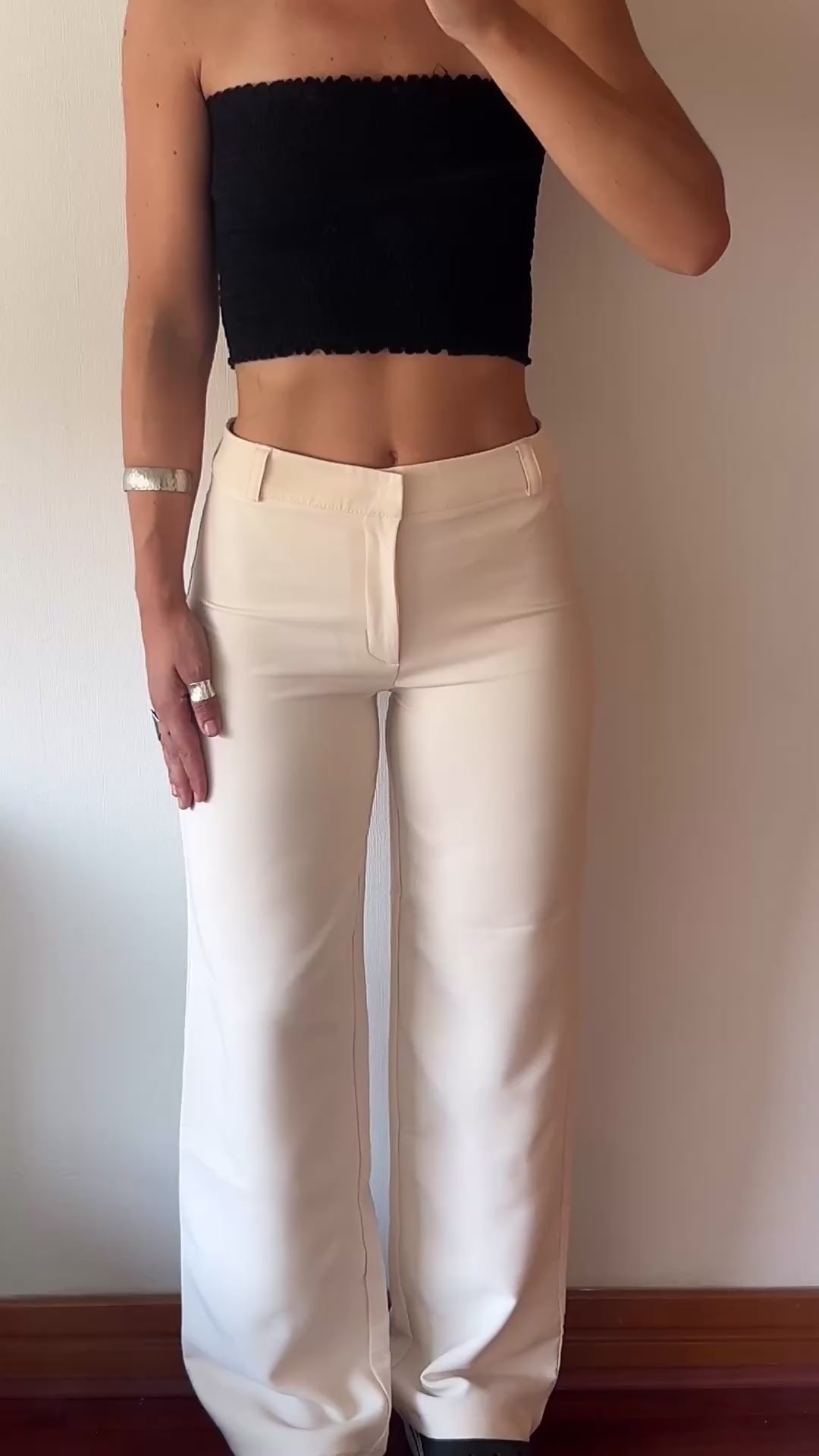 El pantalón crema de este modelo tiene elasticidad, el negro no.