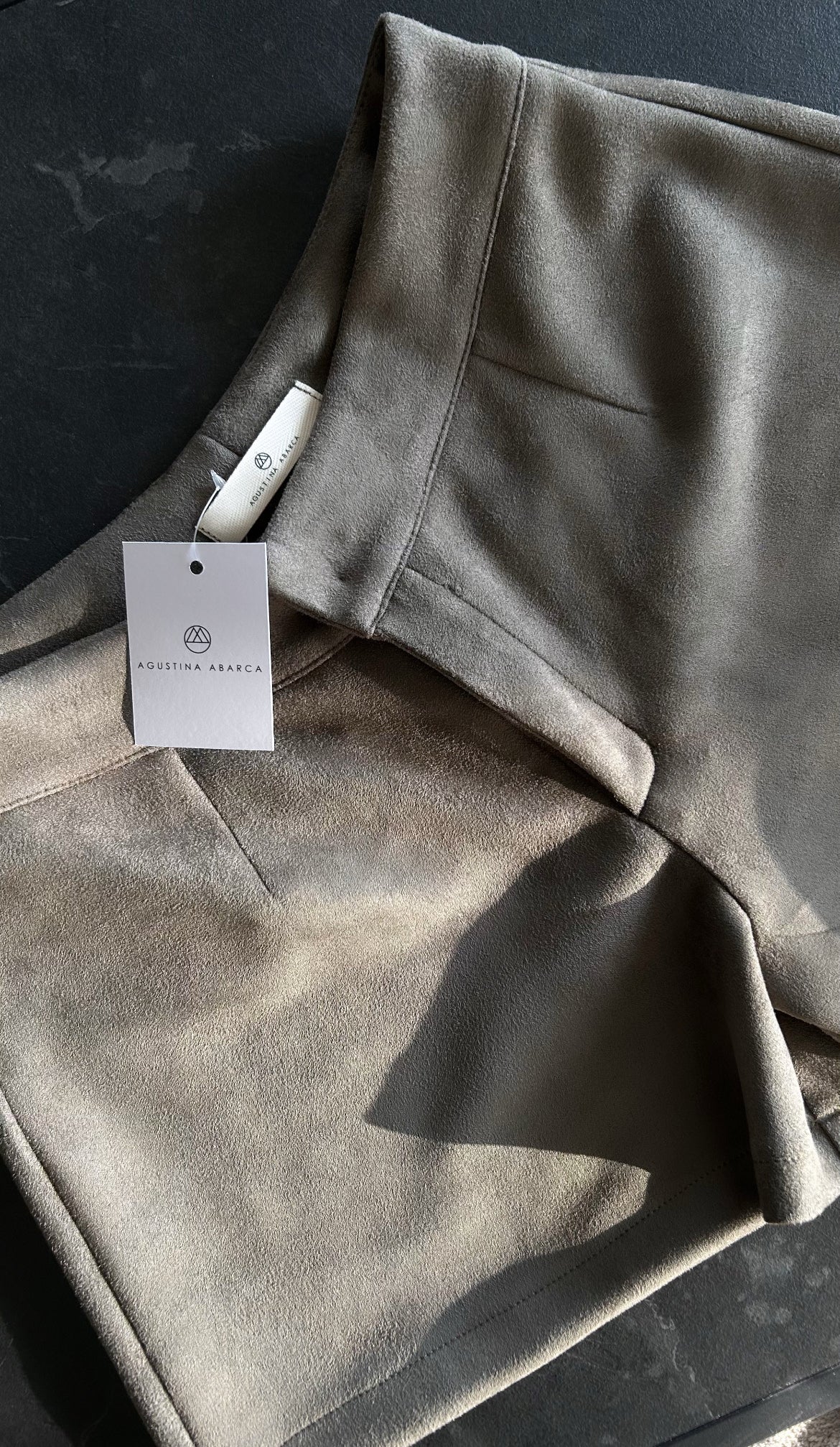Short tiro medio de gamuza sintética elasticado.